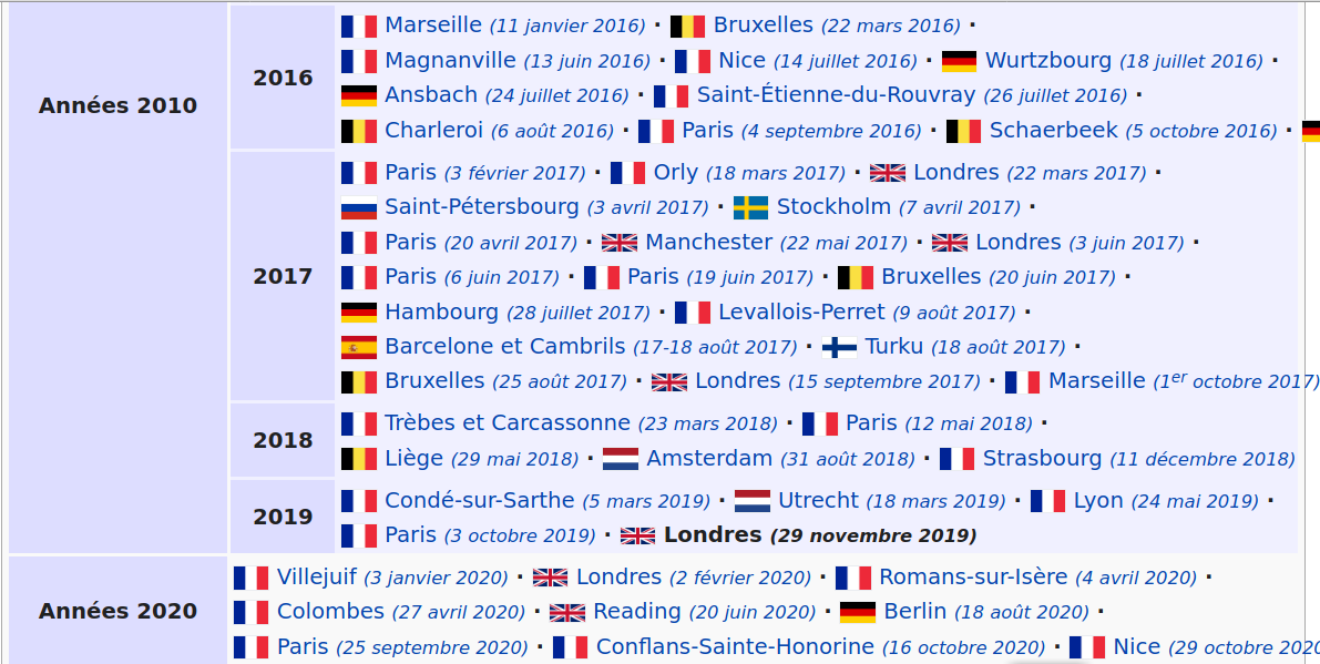 > Le Jeudi 29 octobre, trois personnes (2 femmes et un homme) sont égorgées dans une église de Nice.